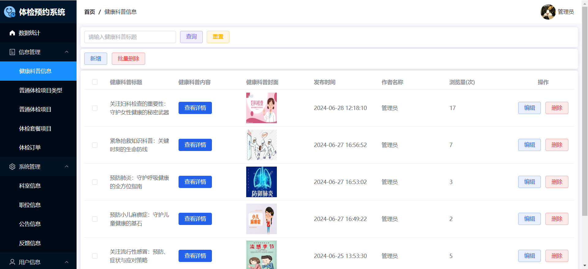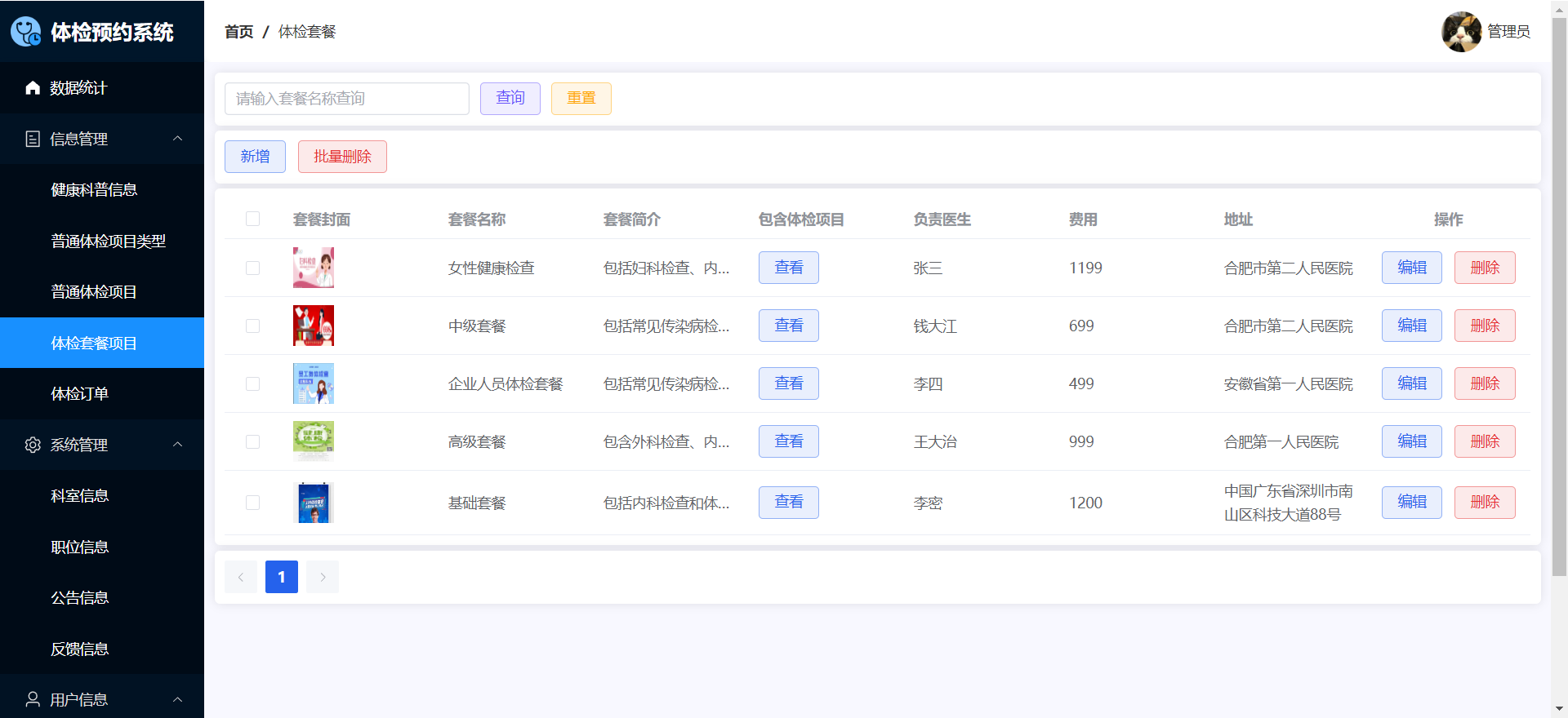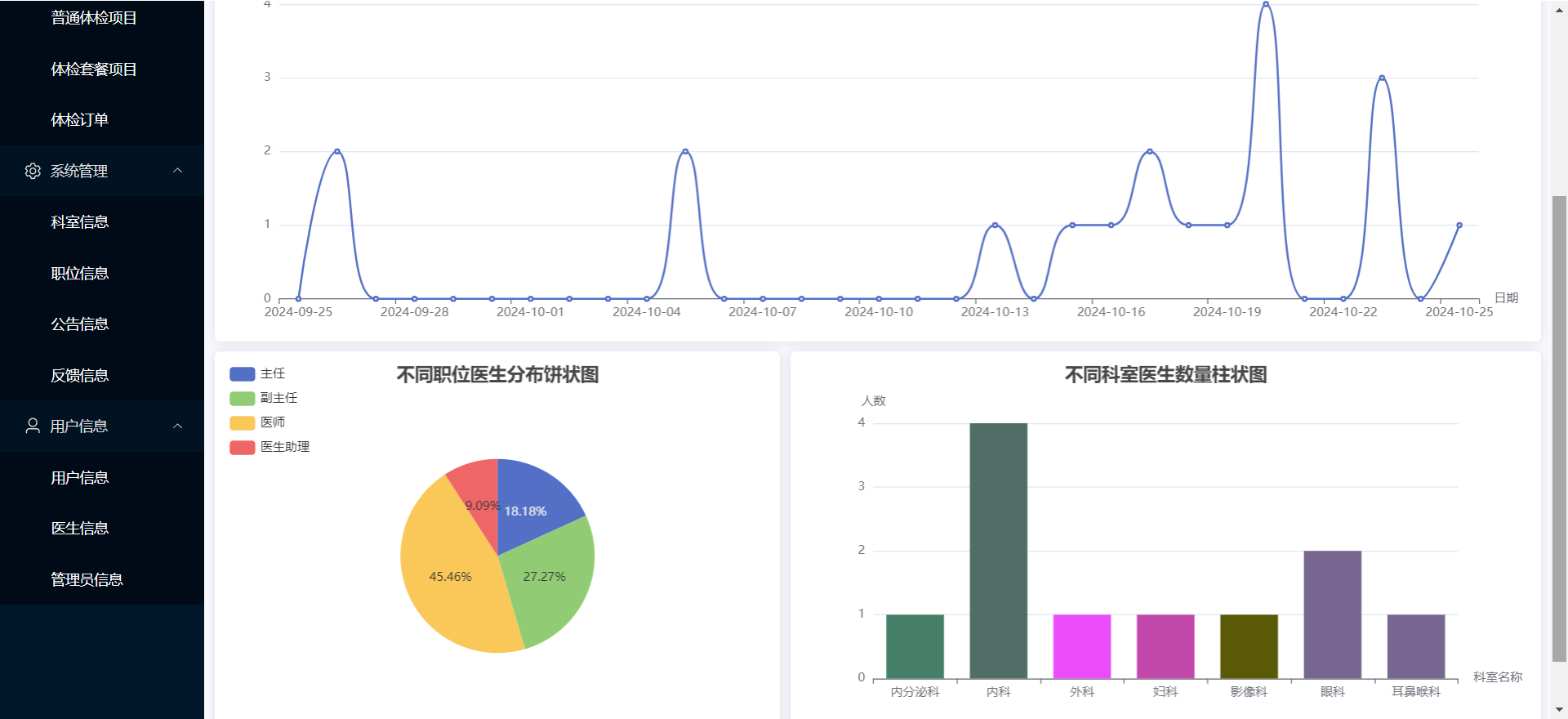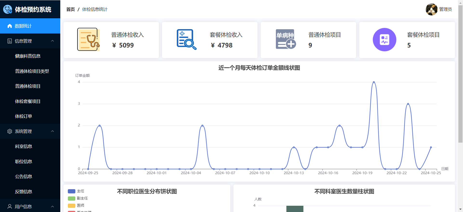 系统首页:查看普通体检项目与套餐体检项目有关的统计数据