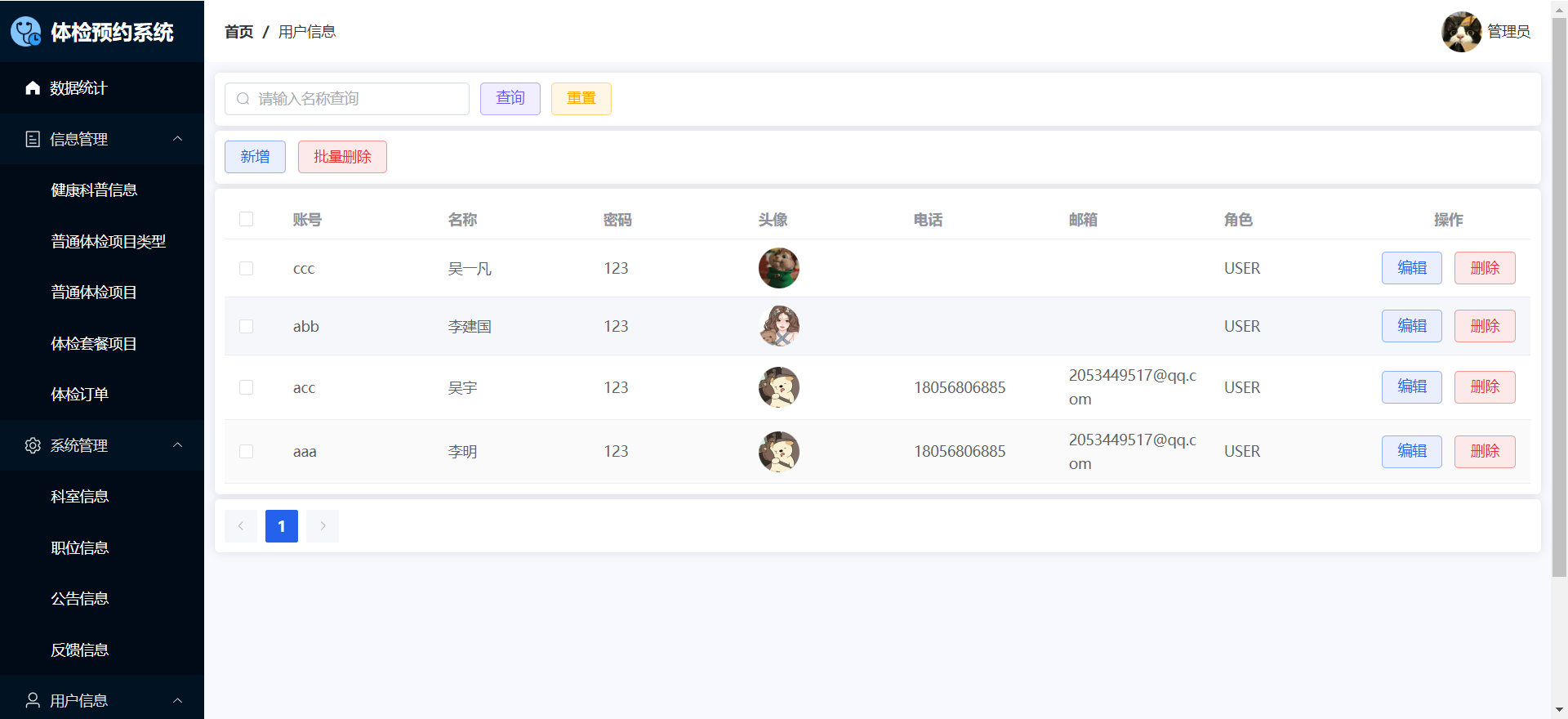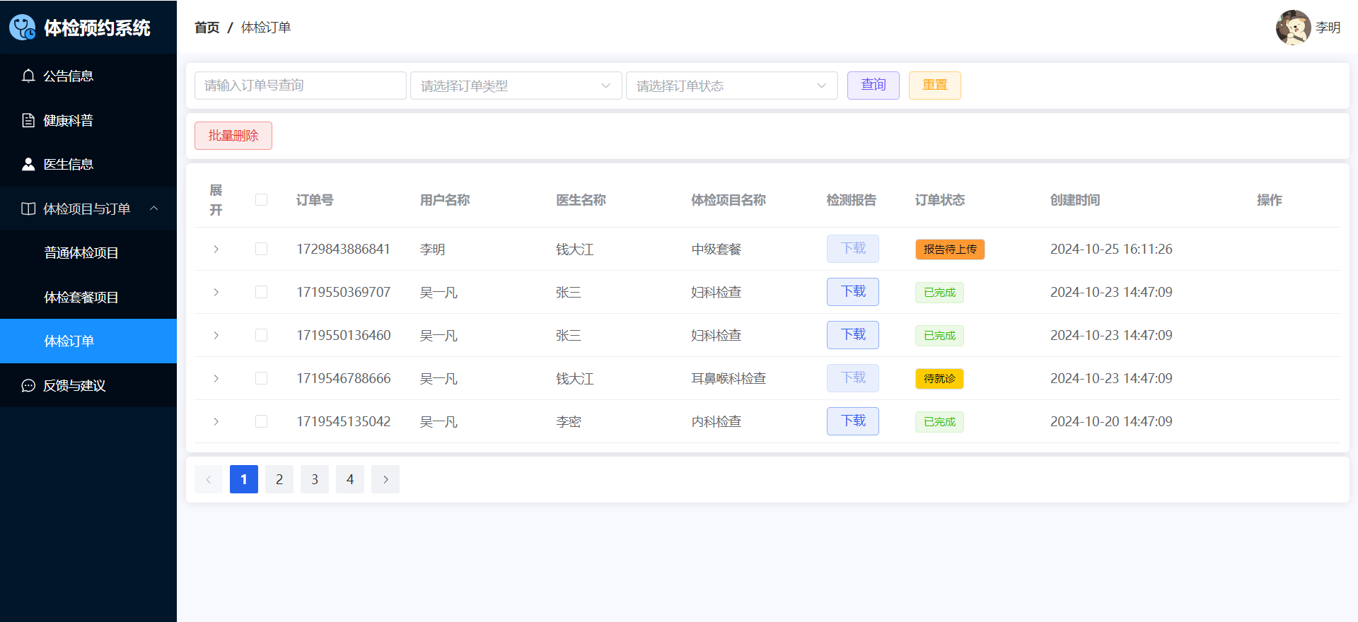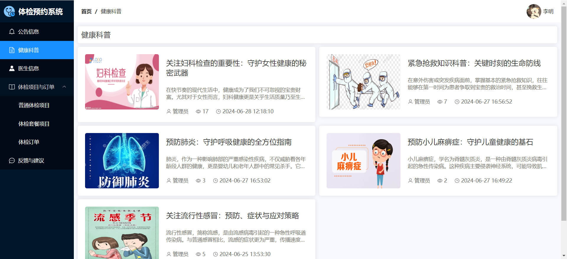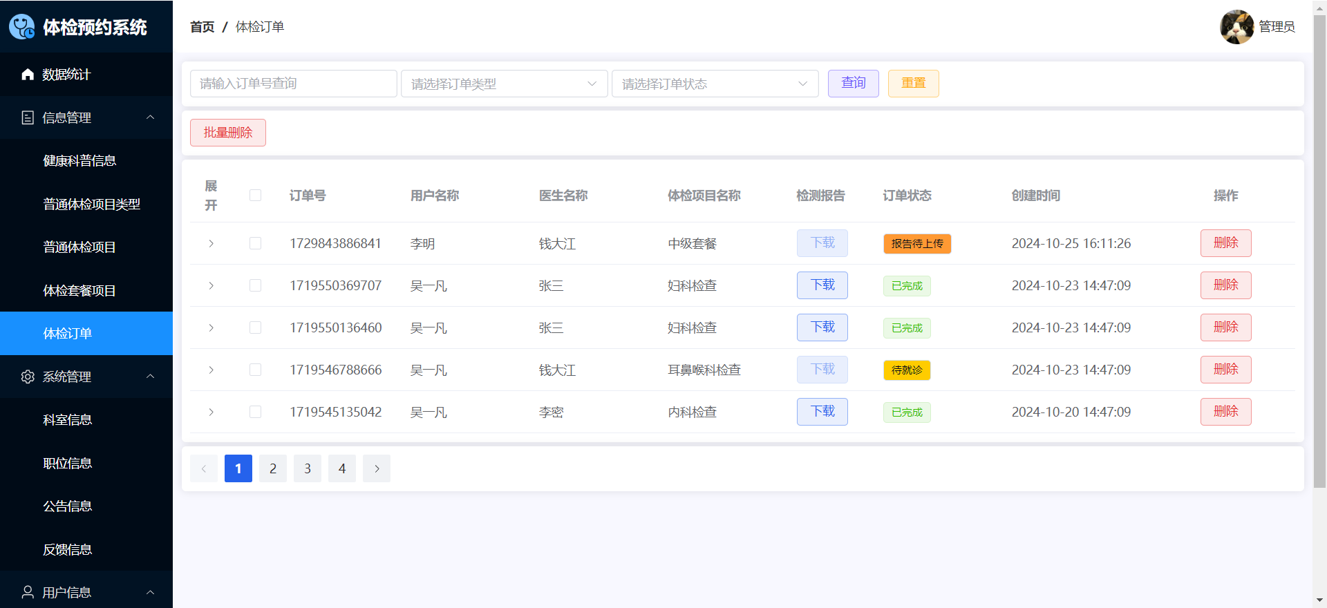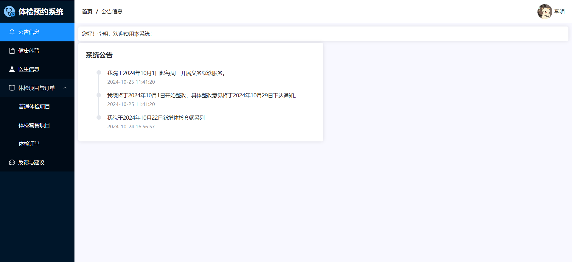 系统首页:查看普通体检项目与套餐体检项目有关的统计数据