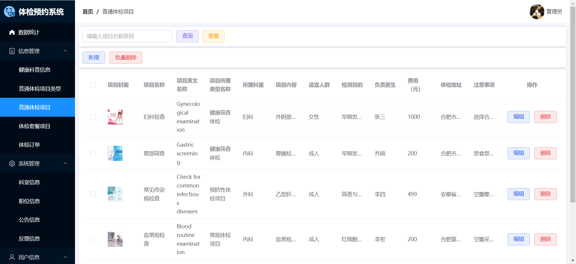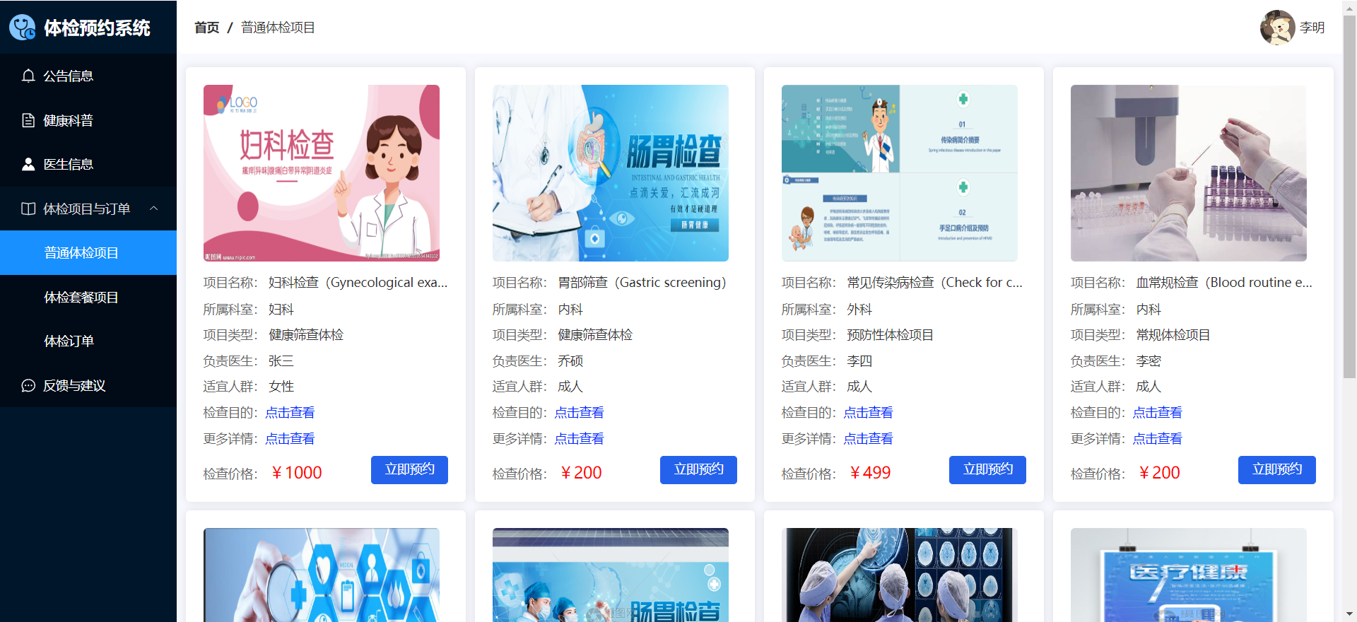 普通体检项目:查看和预约所有可以预约的普通体检项目