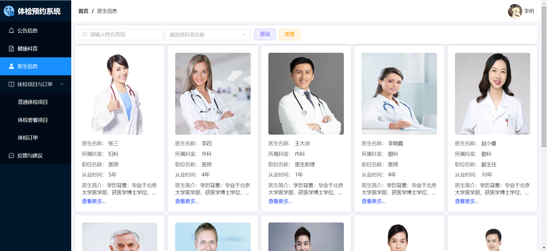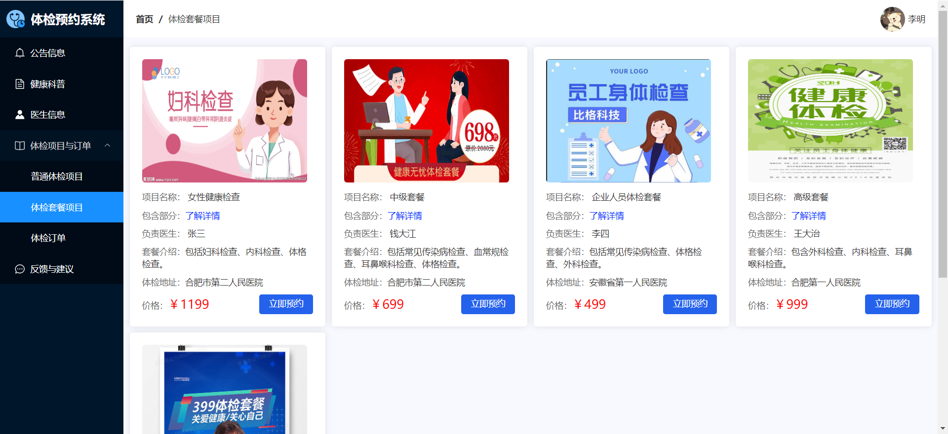 套餐体检项目:查看和预约所有可以预约的套餐体检项目