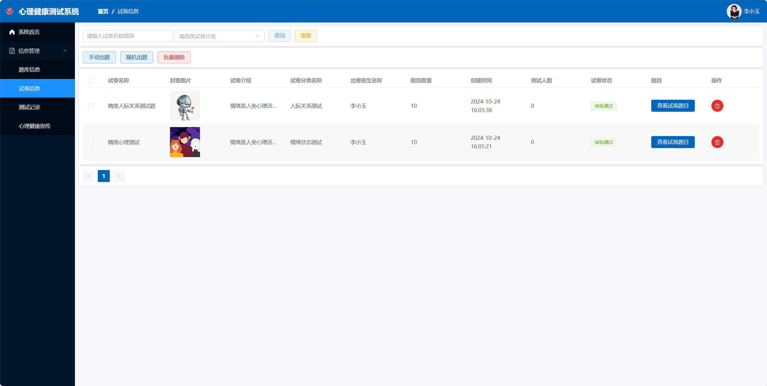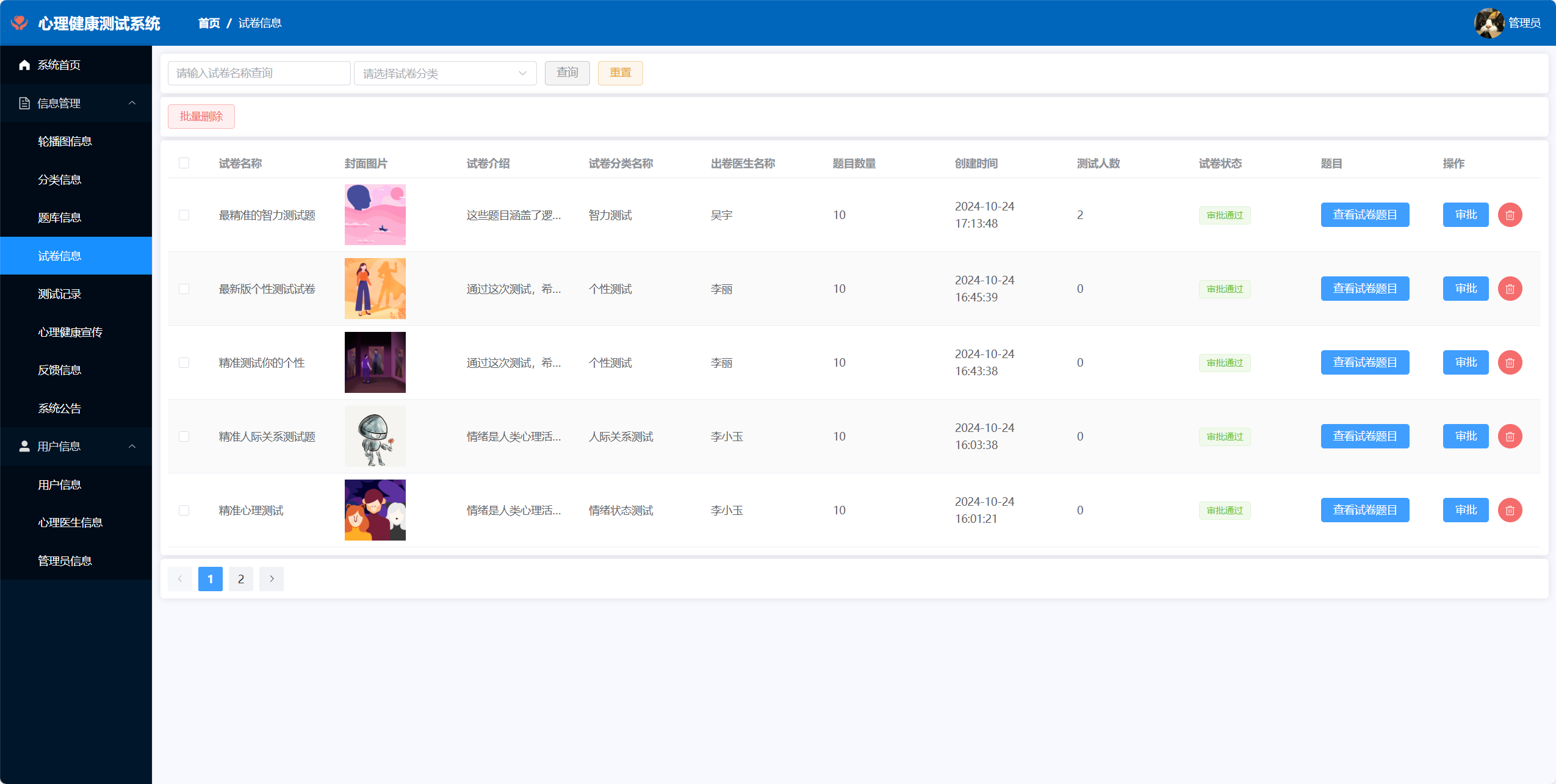 心理测试:浏览所有已通过审批的心理测试试卷信息
