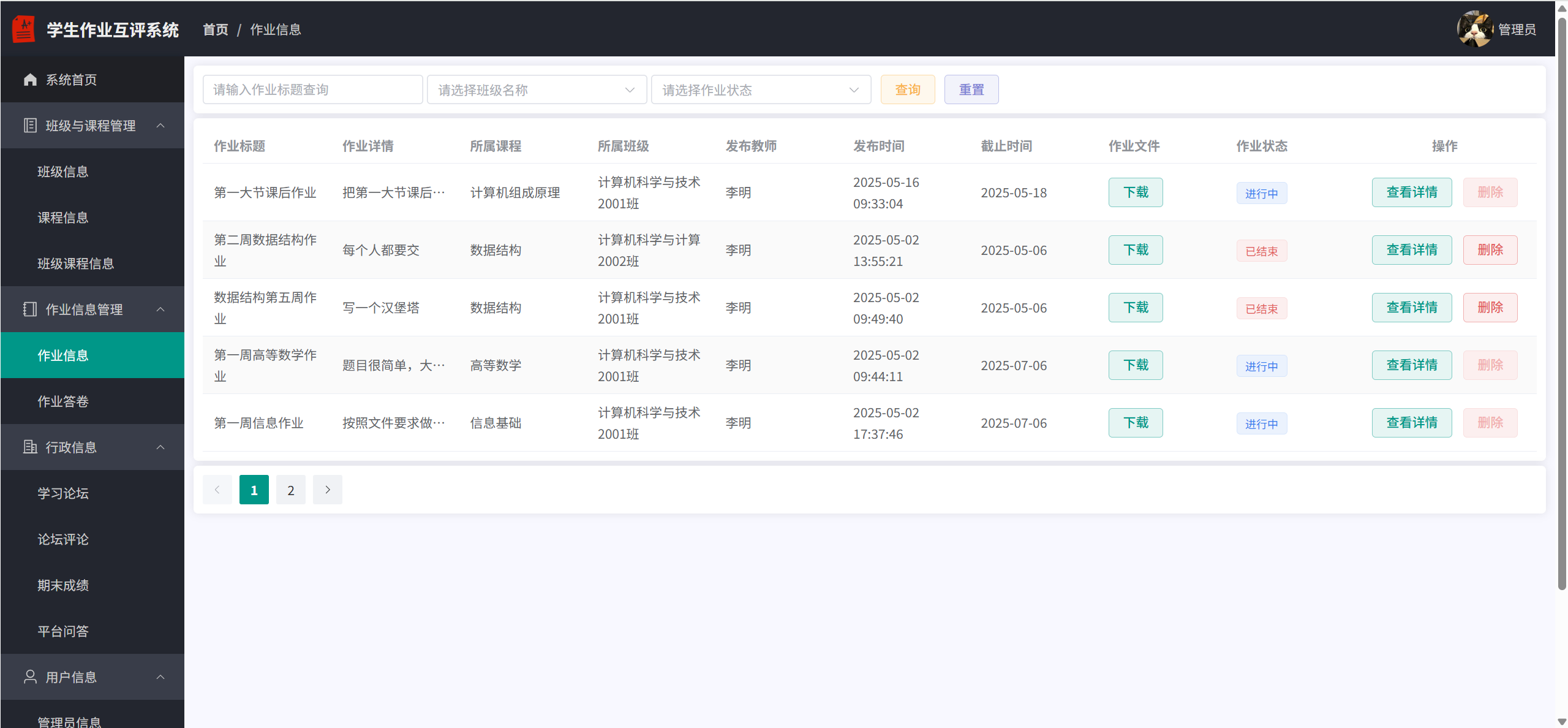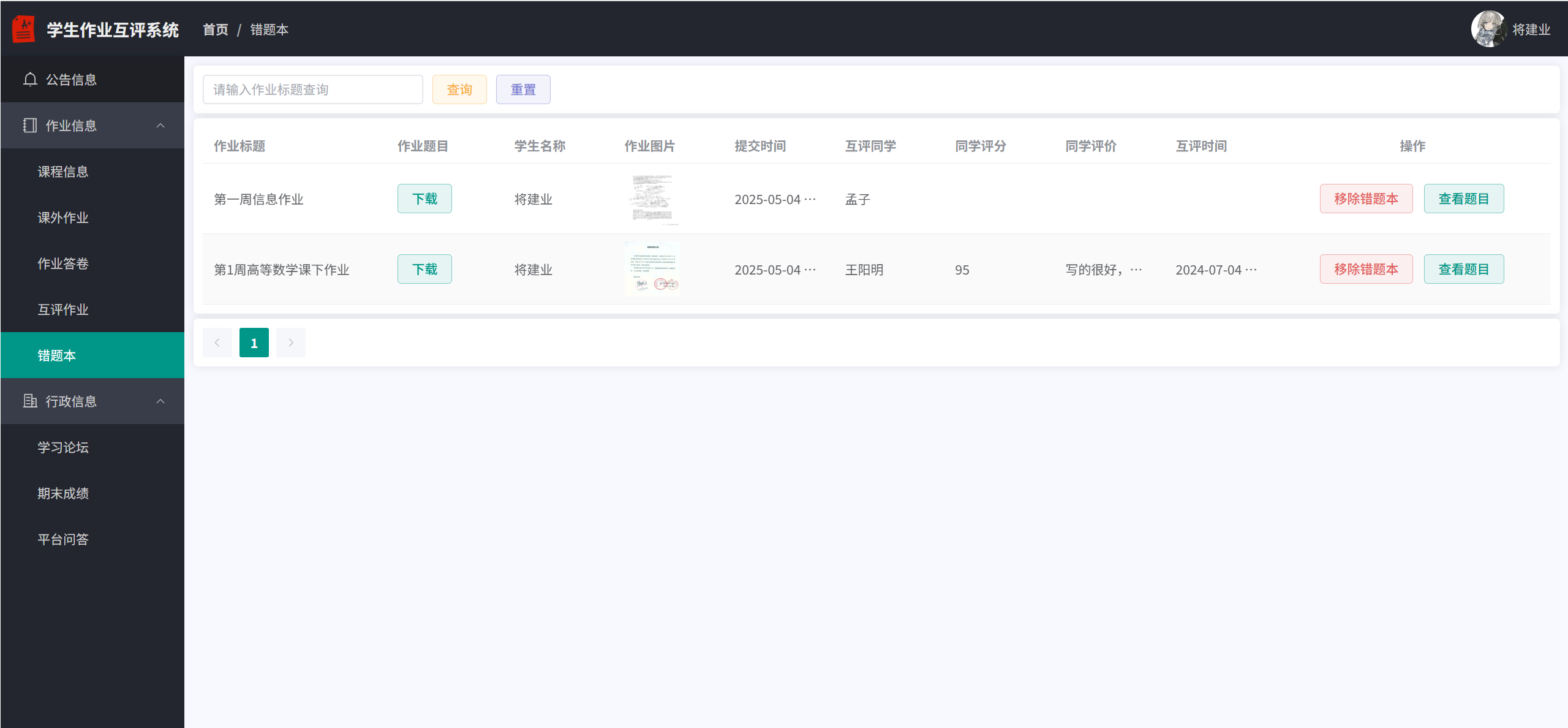 作业答卷:查看由学生提交的教师发布作业的答卷信息并且可以安排互评与评分