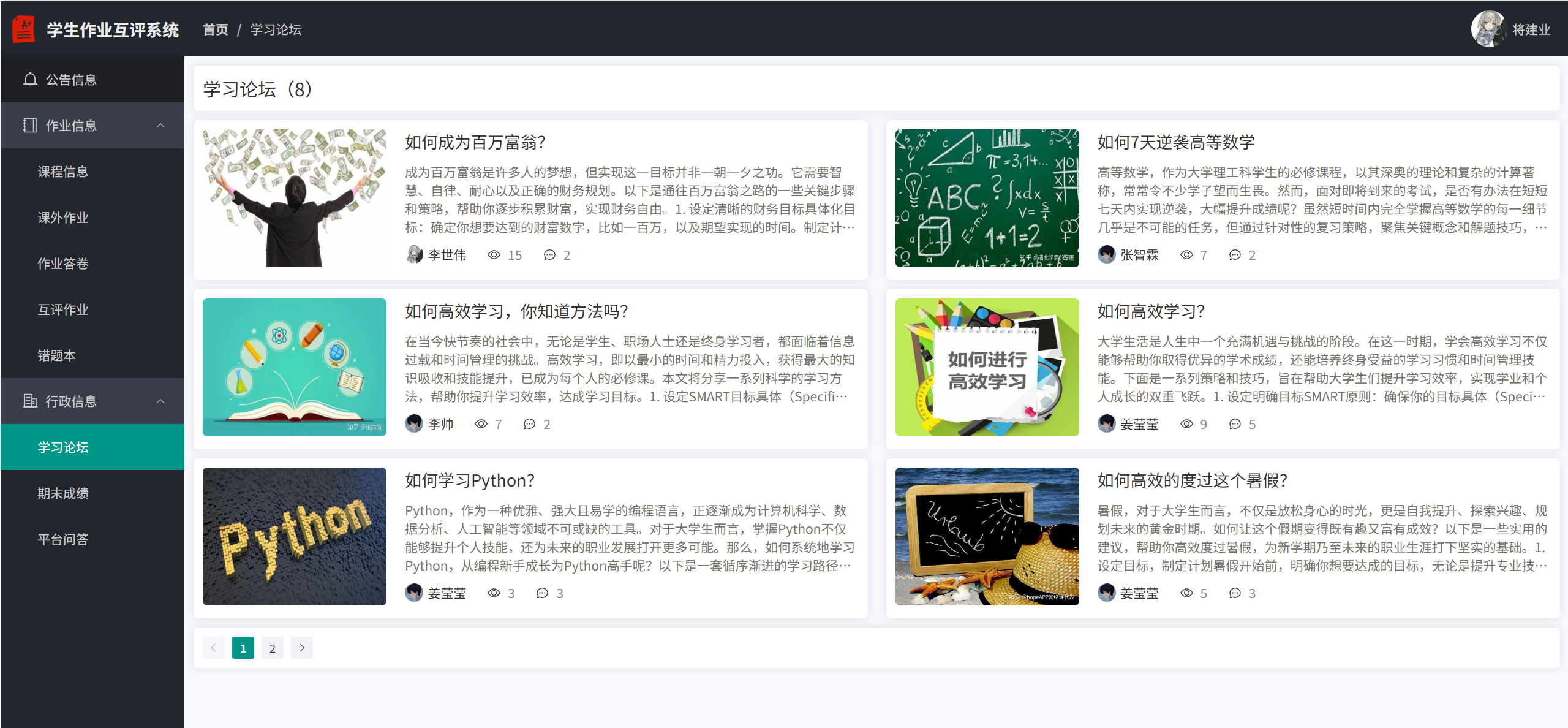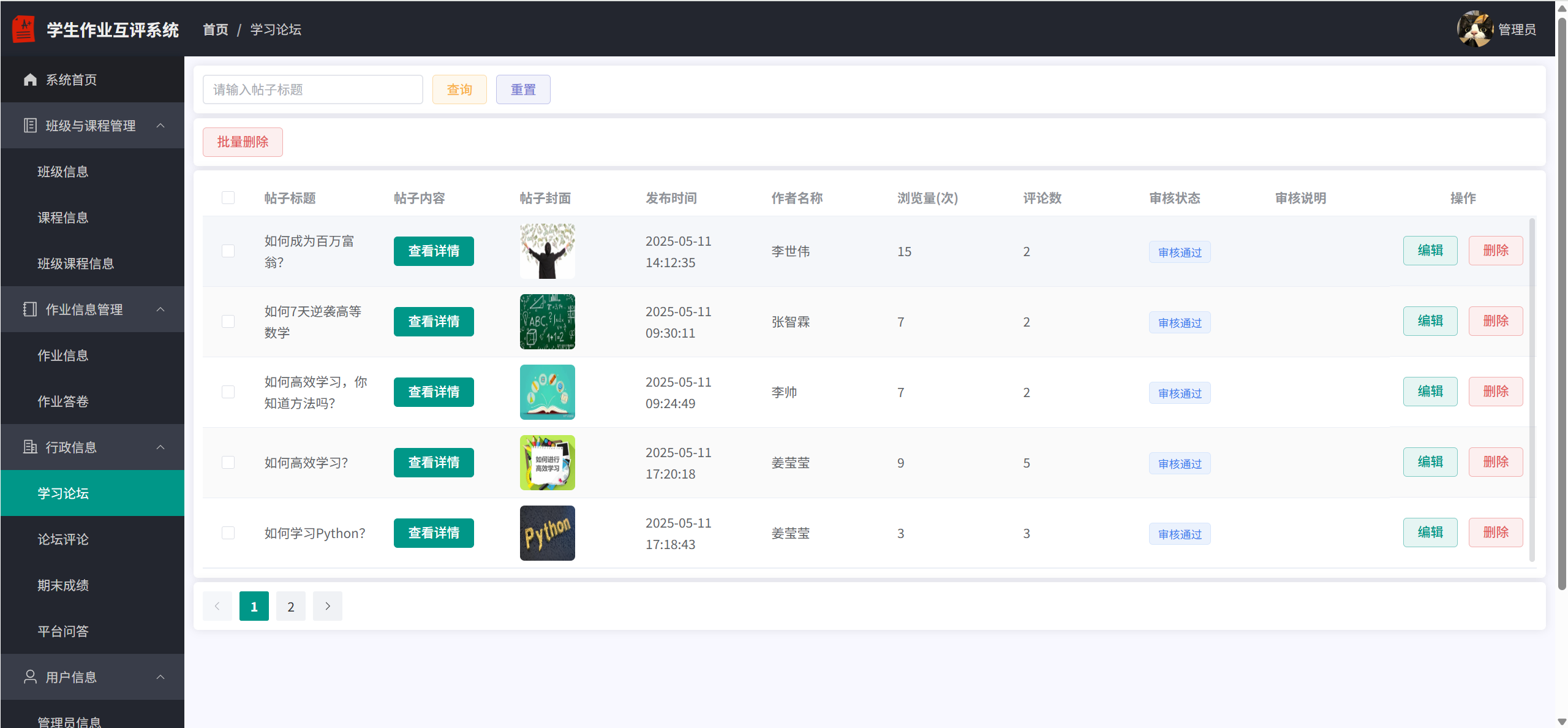 学习论坛:查看所有学生发布的帖子信息和删除不符合规则的帖子信息