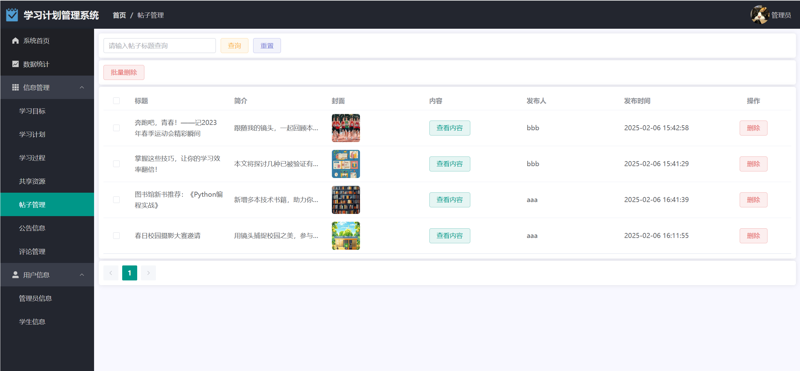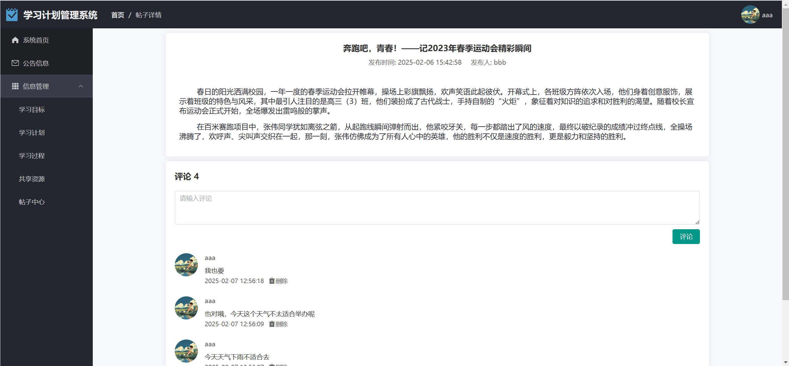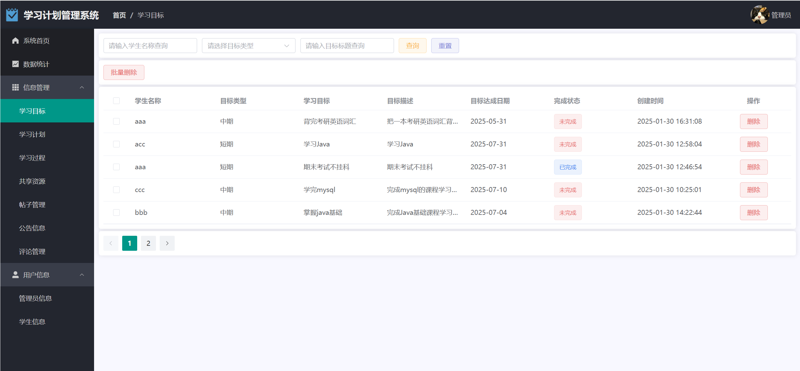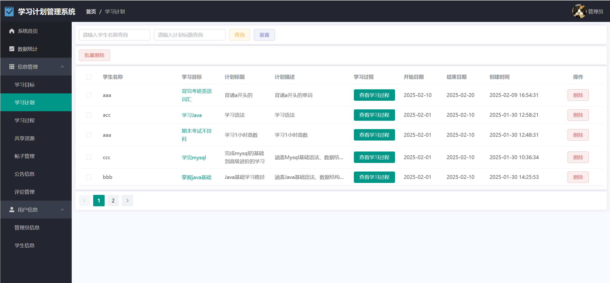 学习计划:查看和管理学生的学习计划,并可查看学习过程