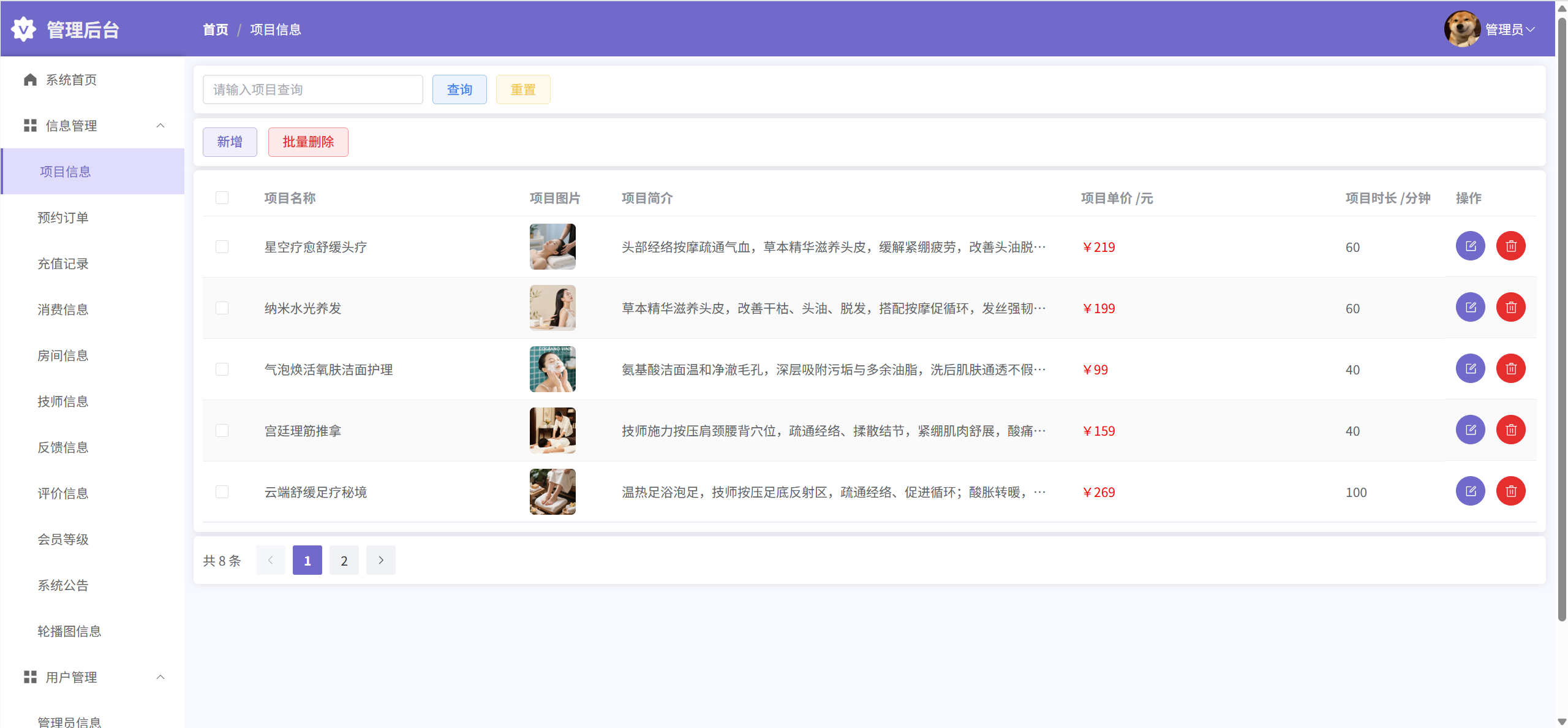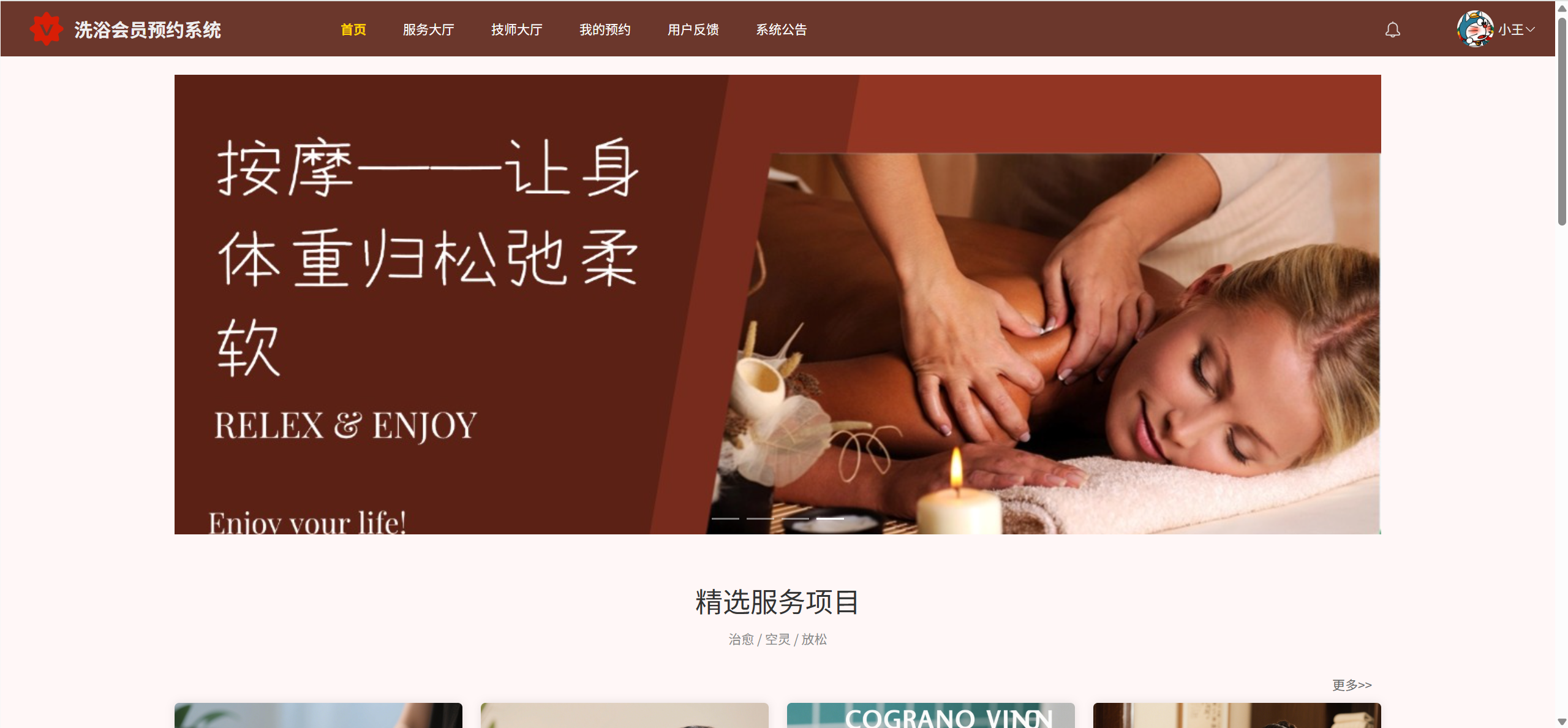 系统首页:浏览轮播图、查看精选服务项目和精选服务技师