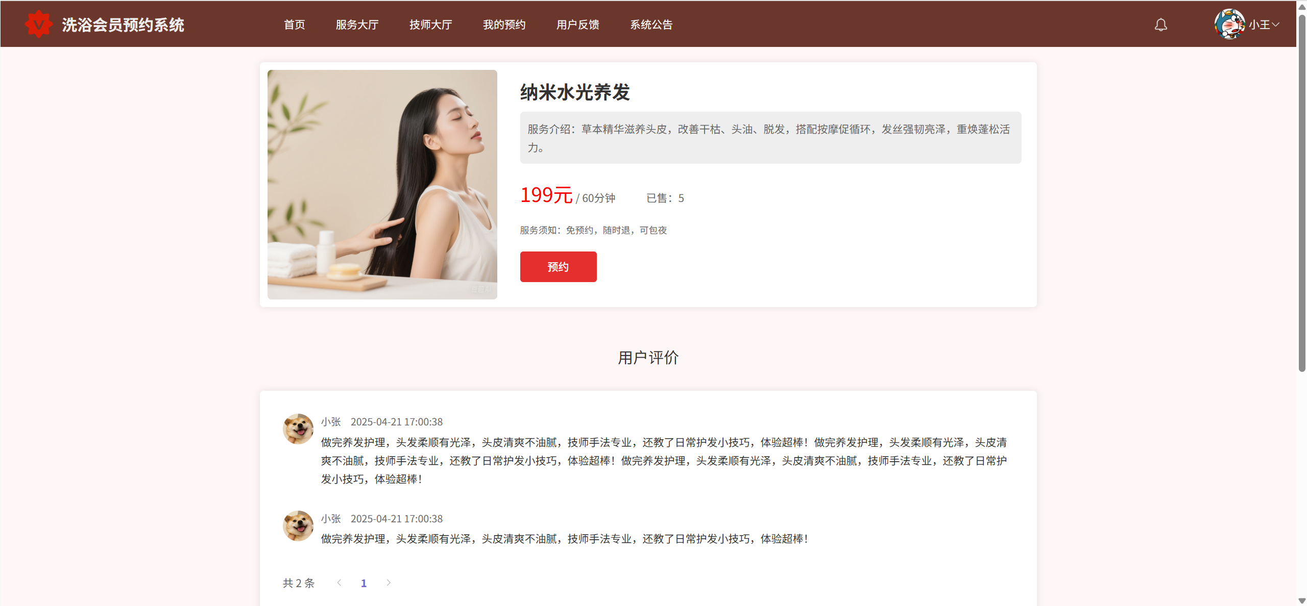 服务详情:预约项目、查看每个项目评价