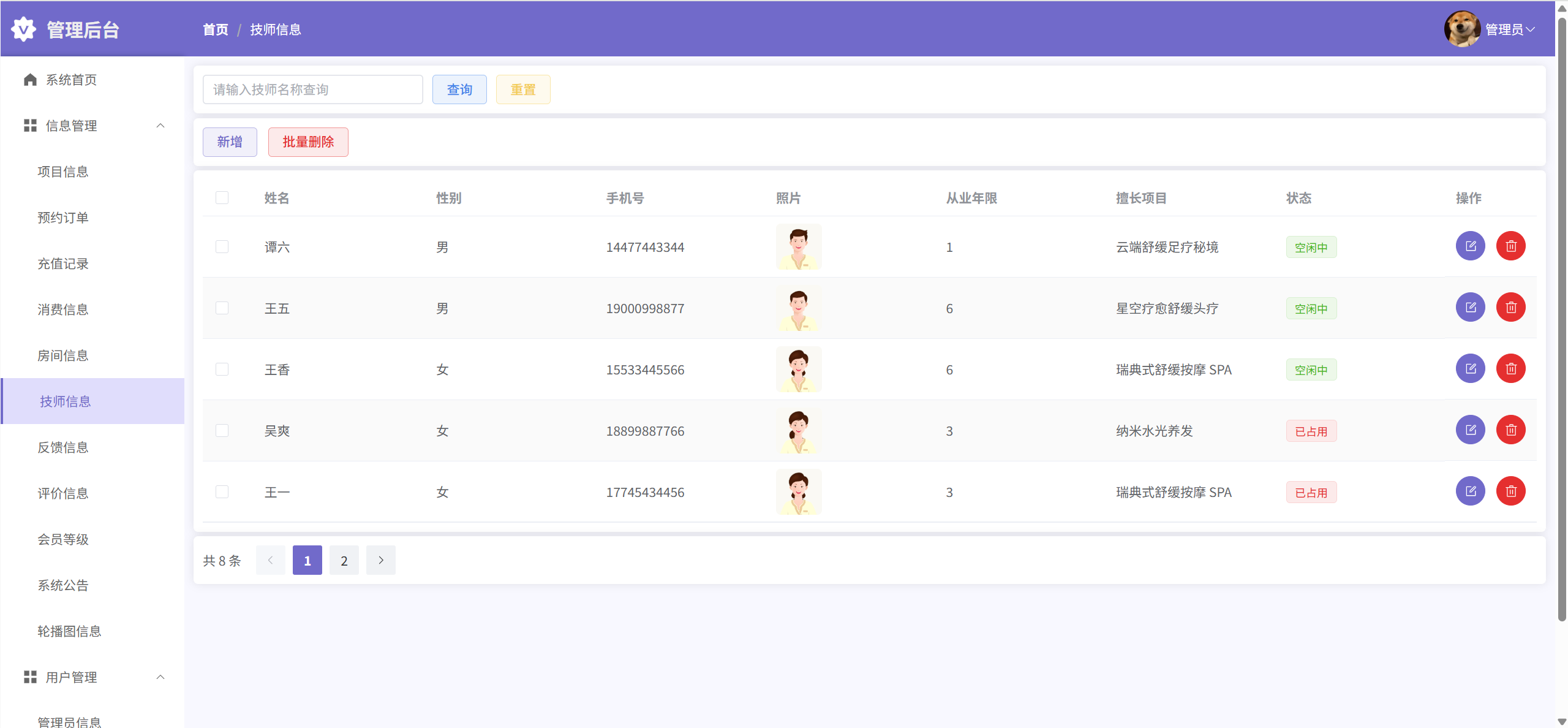 技师信息:管理技师信息