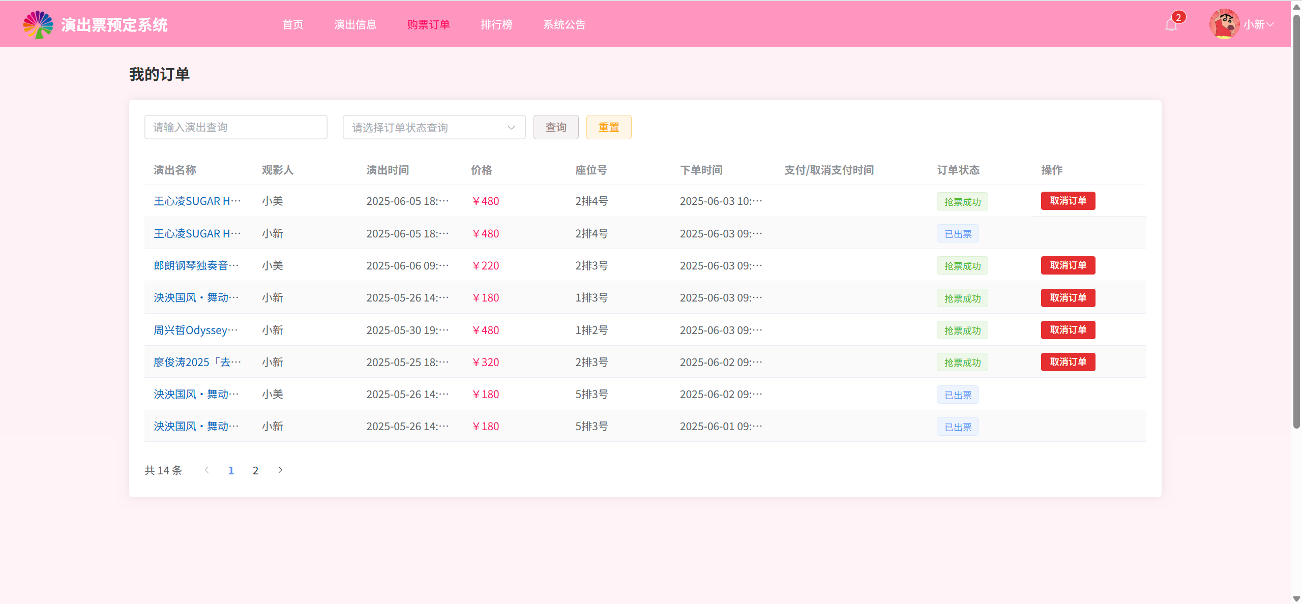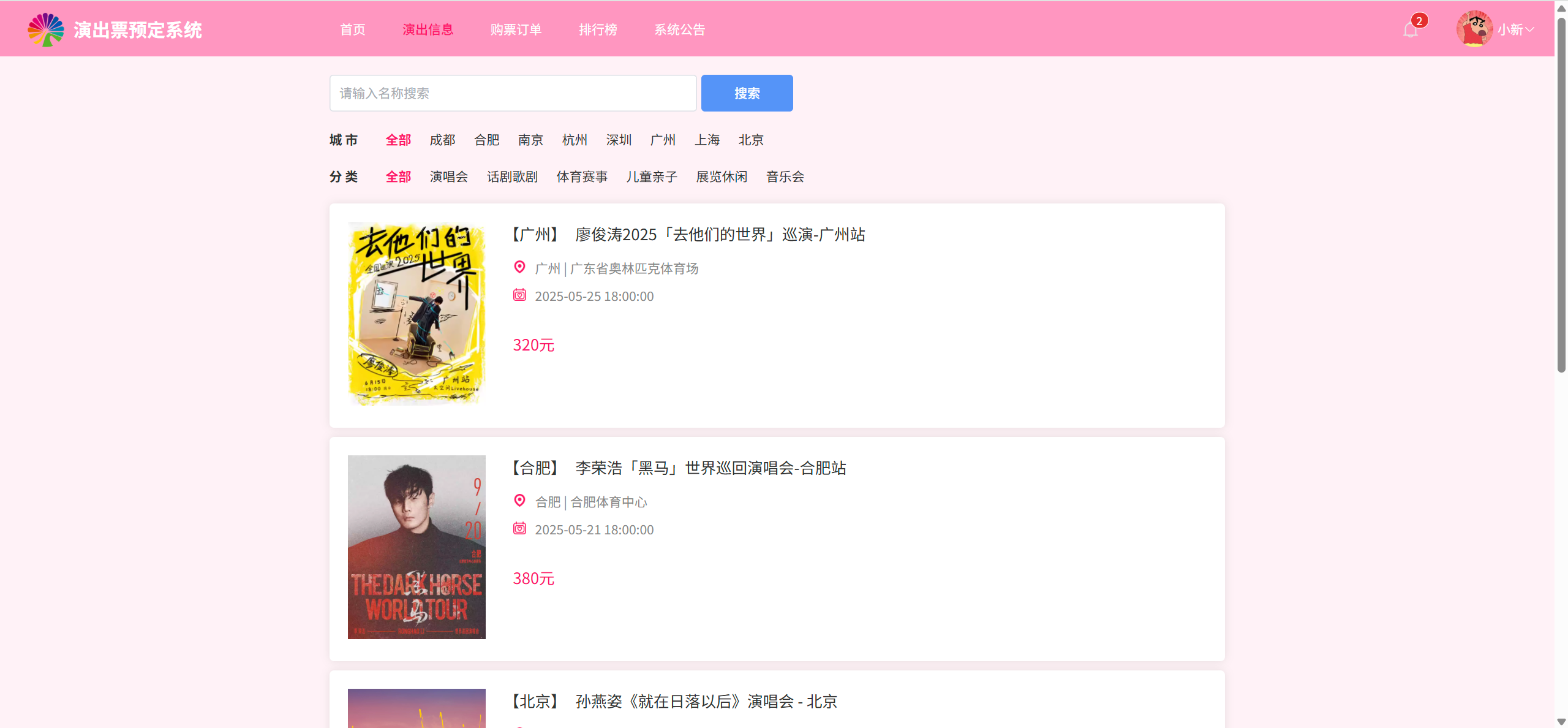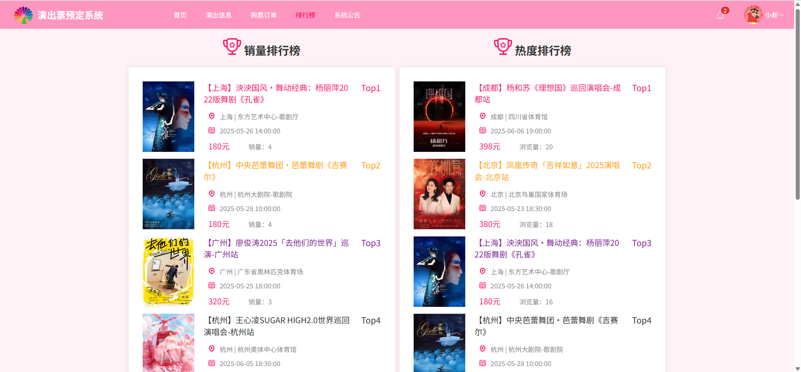 排行榜:按按购票总数、浏览量展示2种购票榜单