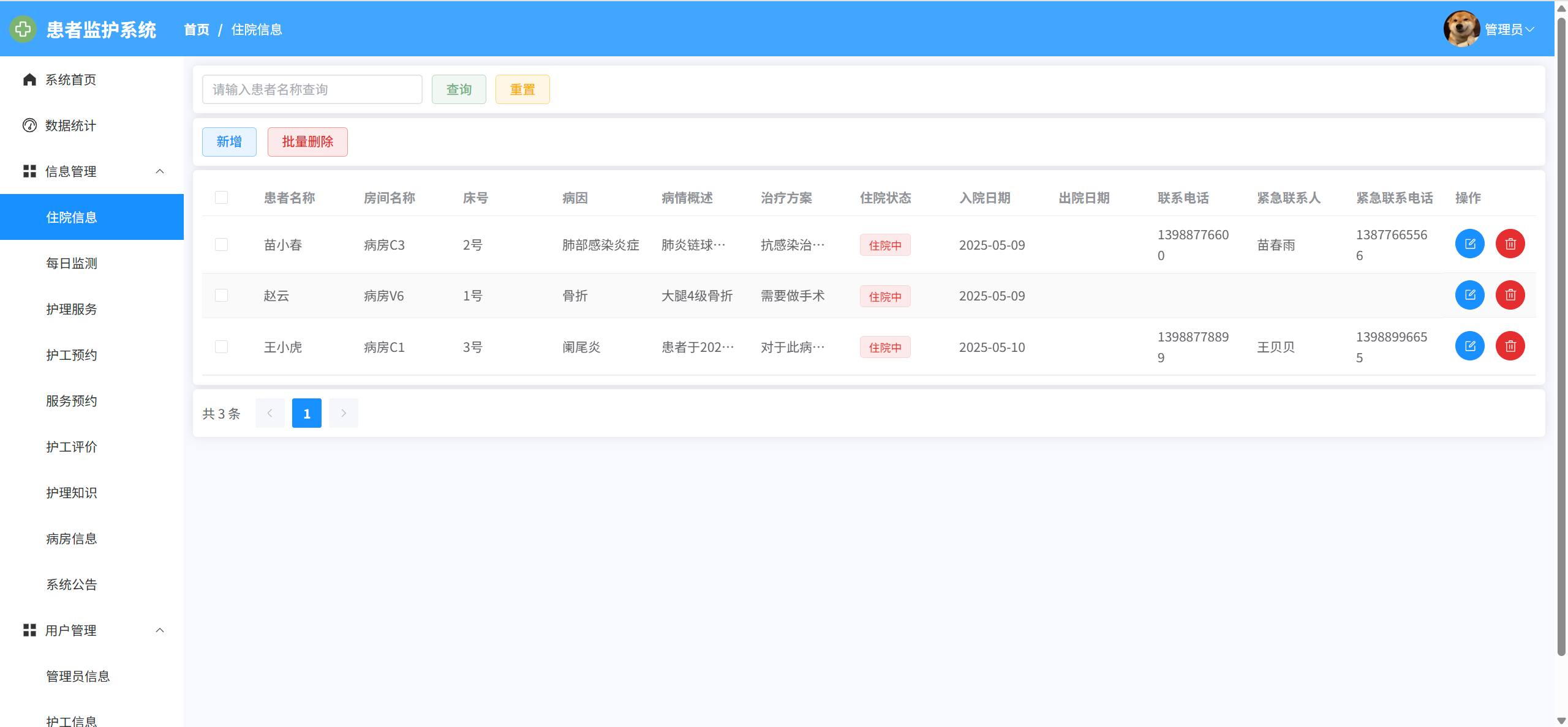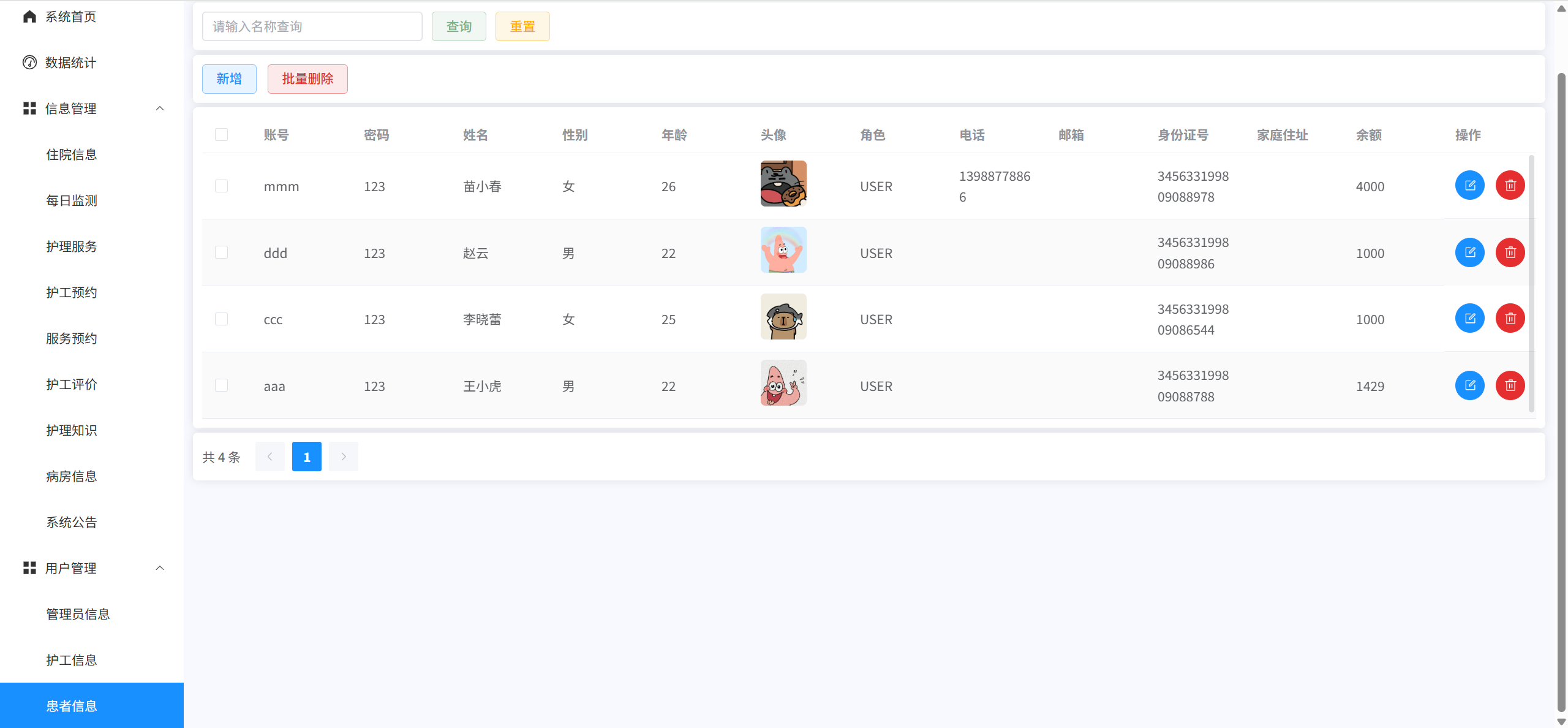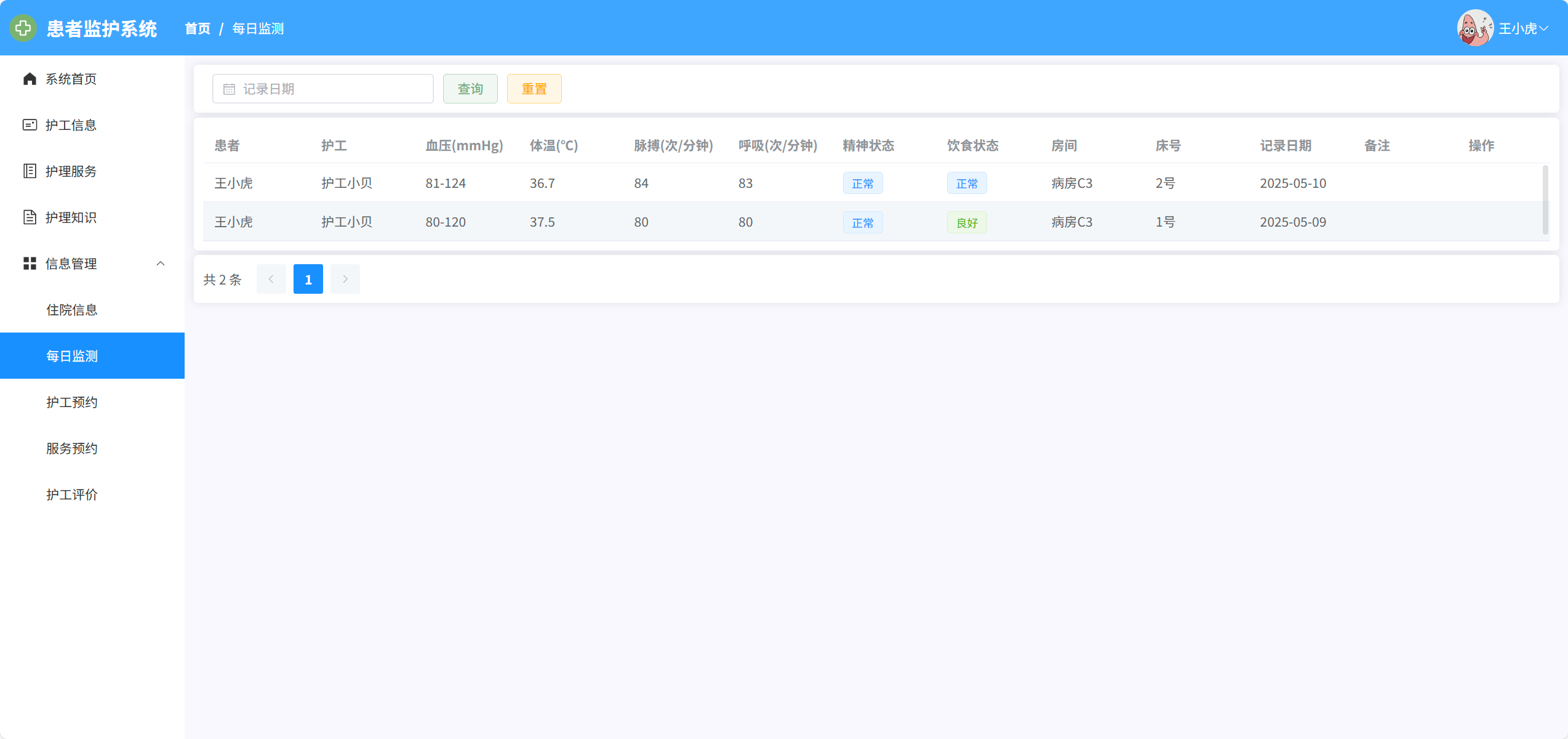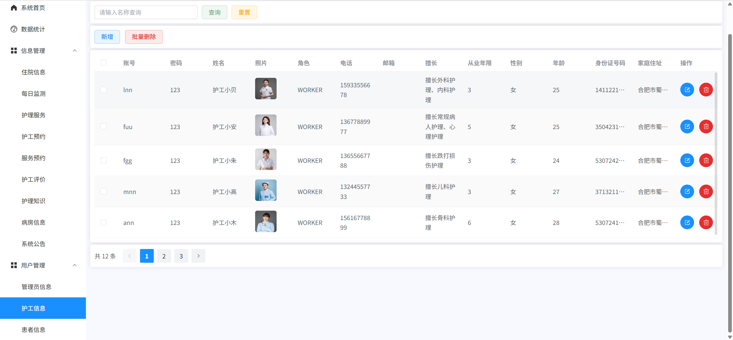 护工信息:查看所有护工信息,可预约、可查看护工评价