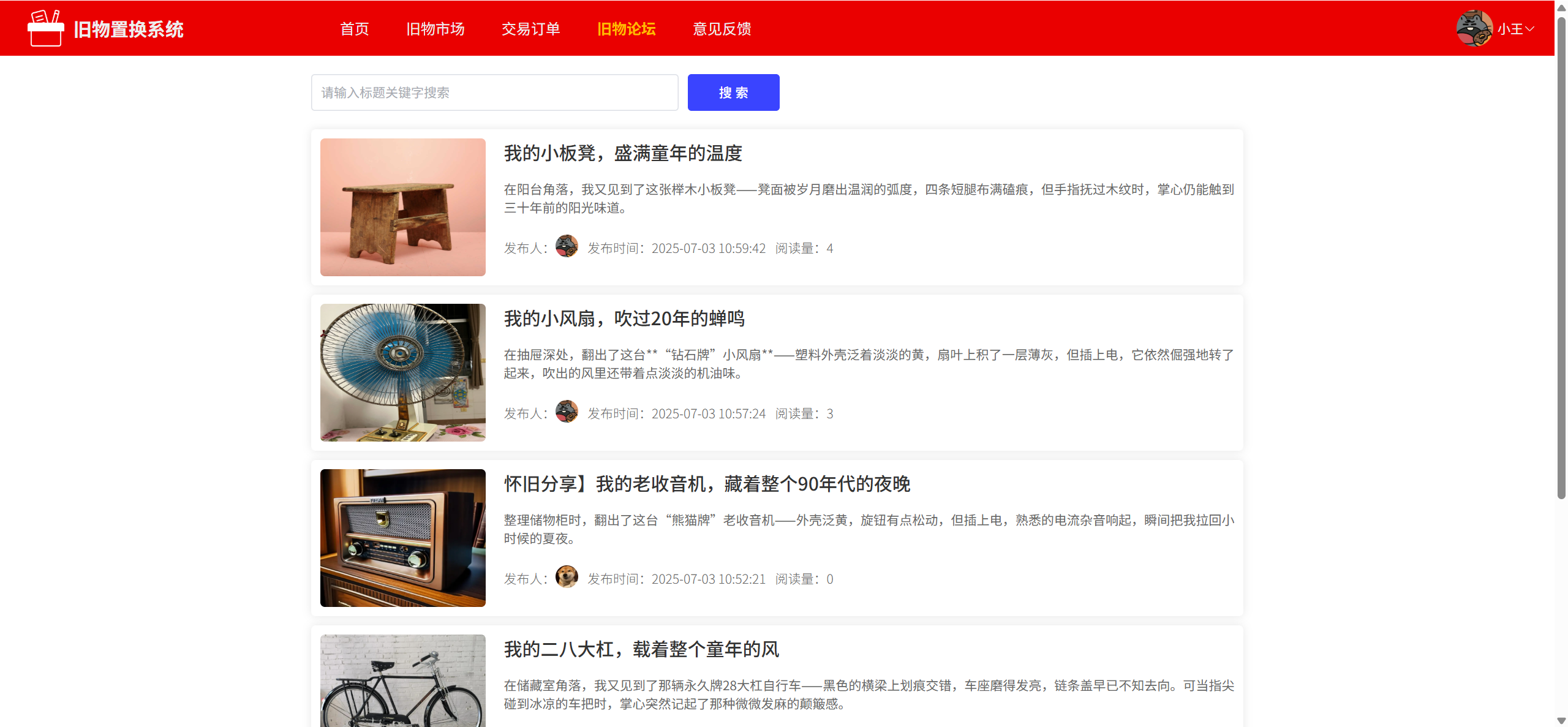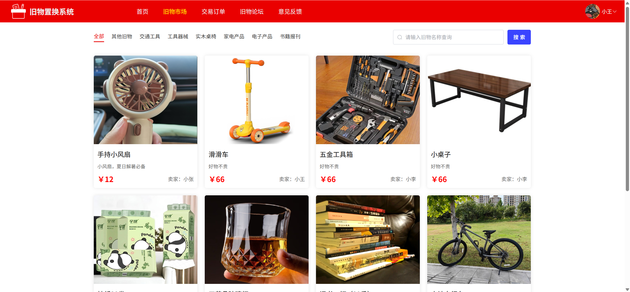 旧物市场:分类展示所有旧物信息
