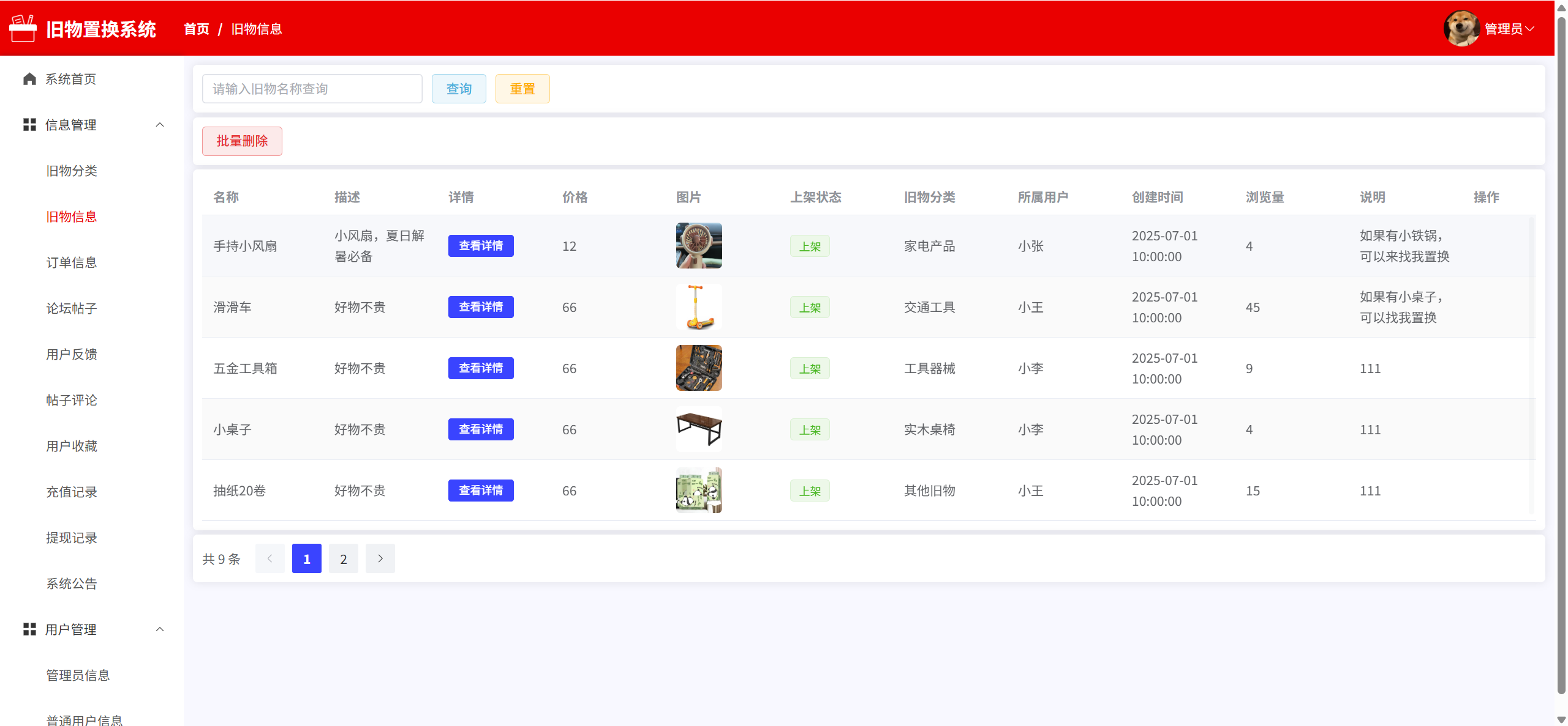 旧物信息:管理旧物信息