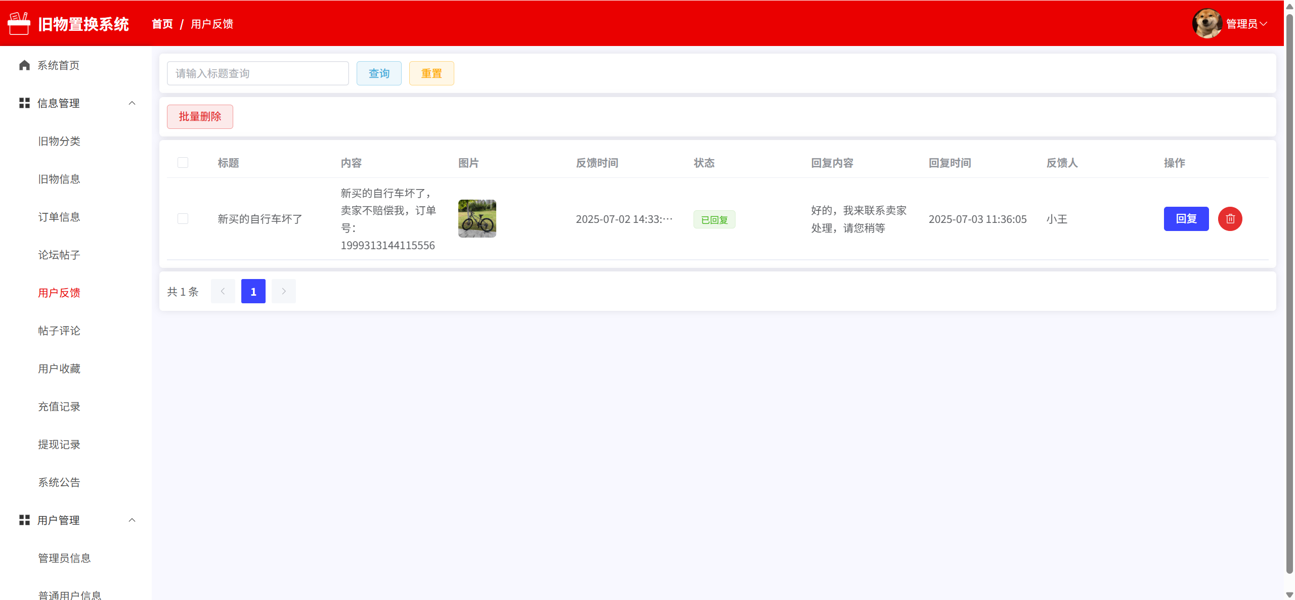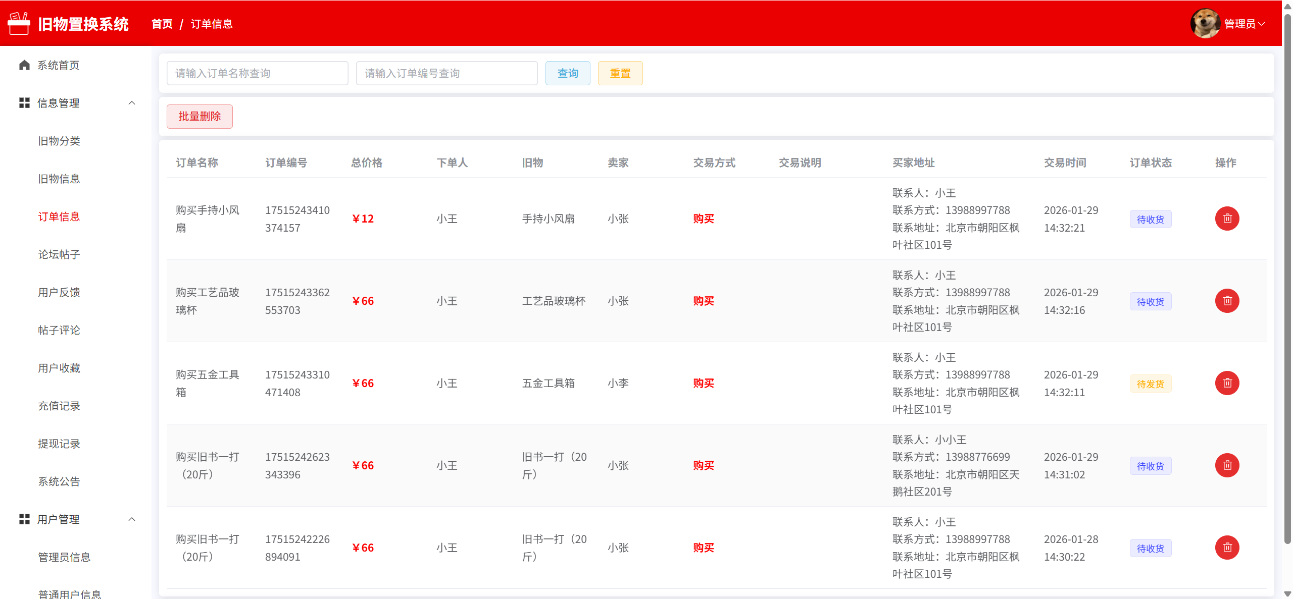 订单信息:管理旧物订单