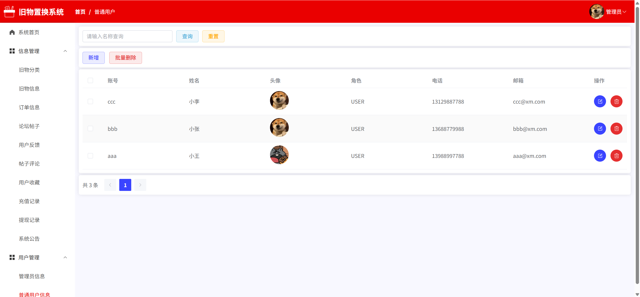 普通用户信息:管理普通用户信息